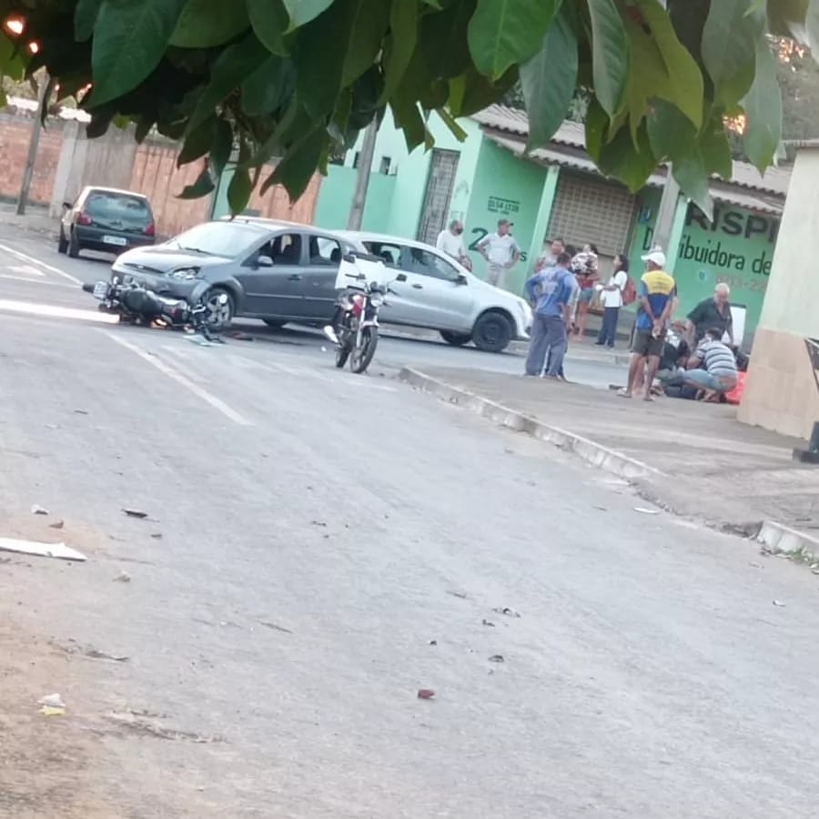 A colisão entre carro e moto ocorreu às 21h, no cruzamento da Rua FV-2, no Fortevile, com a Rua RV-10, no Residencial Rio Verde.