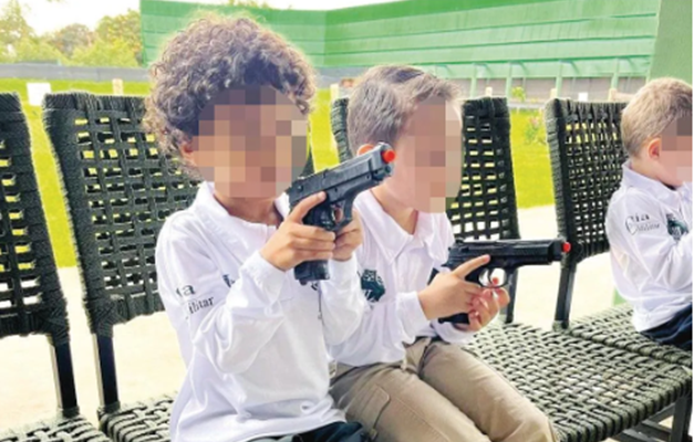 Todas as fotos com as crianças manuseando as armas de pressão, conhecidas como airsoft, foram publicadas pelo clube nas redes sociais na semana seguinte.