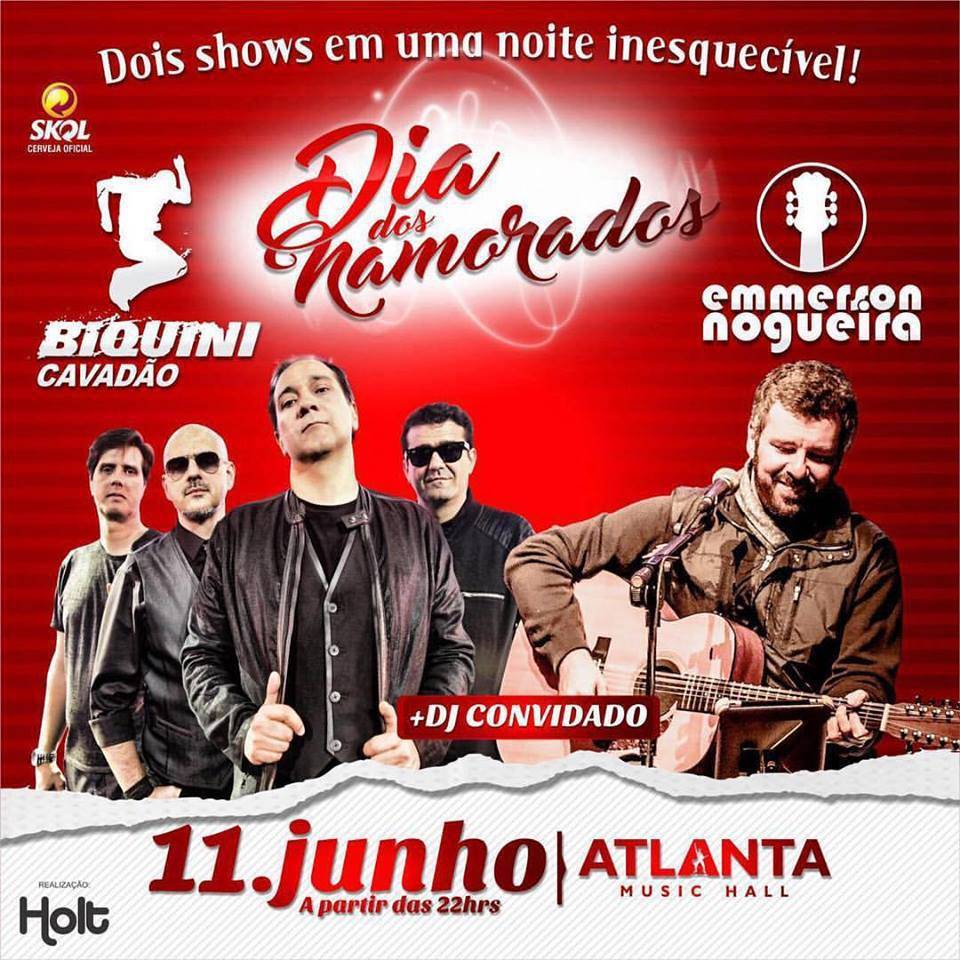 Biquini Cavadão e Emmerson Nogueira vão animar os amantes da música em Goiânia. As duas atrações estarão no palco da Atlanta Music Hall para comemorar o Dia dos Namorados (show será na véspera, 11/06).
