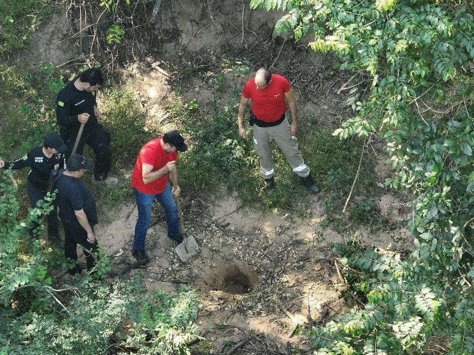 Após buscas realizadas com o auxílio de cães farejadores e o Corpo de Bombeiros, os corpos foram encontrados enterrados na propriedade, que possui aproximadamente 6 alqueires.