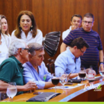 Após o resultado final, o prefeito eleito de Aparecida de Goiânia, Leandro Vilela, também se juntou ao evento no Palácio.