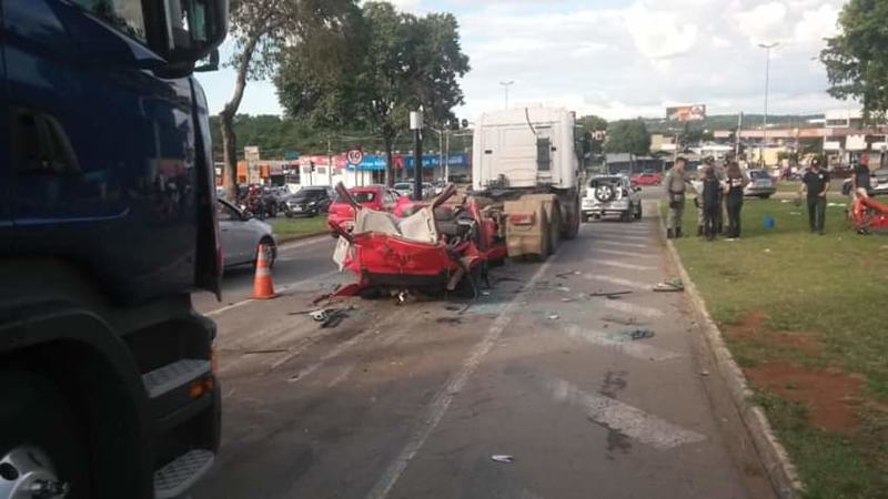 Dois carros e dois caminhões se envolveram em um grave acidente na Avenida Perimetral Norte, em Goiânia.