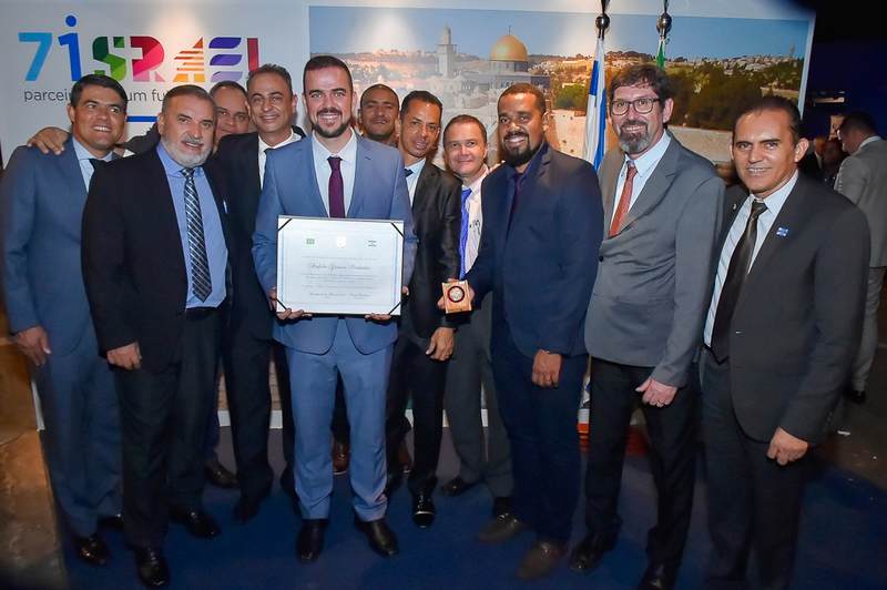 O prefeito de Aparecida Gustavo Medanha foi homenageado, ao lado do presidente Jair Bolsonaro, na Embaixada de Israel, em Brasília, na noite desta quarta, 22.