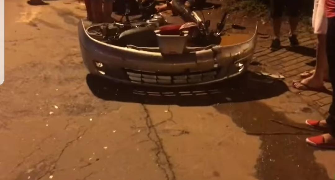 O motorista envolvido no acidente fugiu do local. Com o impacto, o para-choque do carro com a placa acabou caindo.