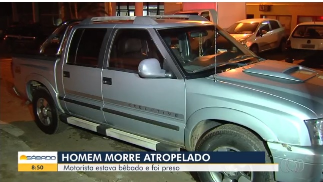 Segundo a PM, essa é a caminhonete que atropelou e matou o pedestre no Papilon Park, em Aparecida | Foto: reprodução TV Anhanguera