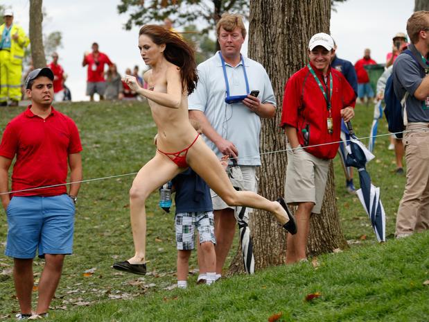 Mulher seminua invade torneio famoso de golfe nos EUA