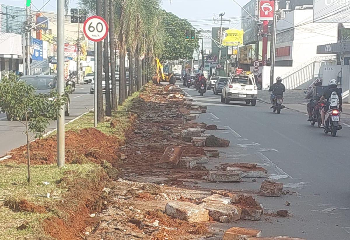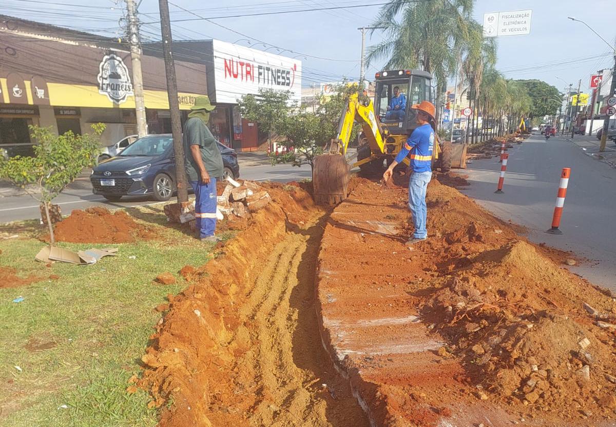 O prefeito Sandro Mabel iniciou no sábado (15) as obras para a implantação da 3ª faixa da Avenida Castelo Branco, entre as praças Walter Santos e Ciro Lisita, no setor Coimbra.