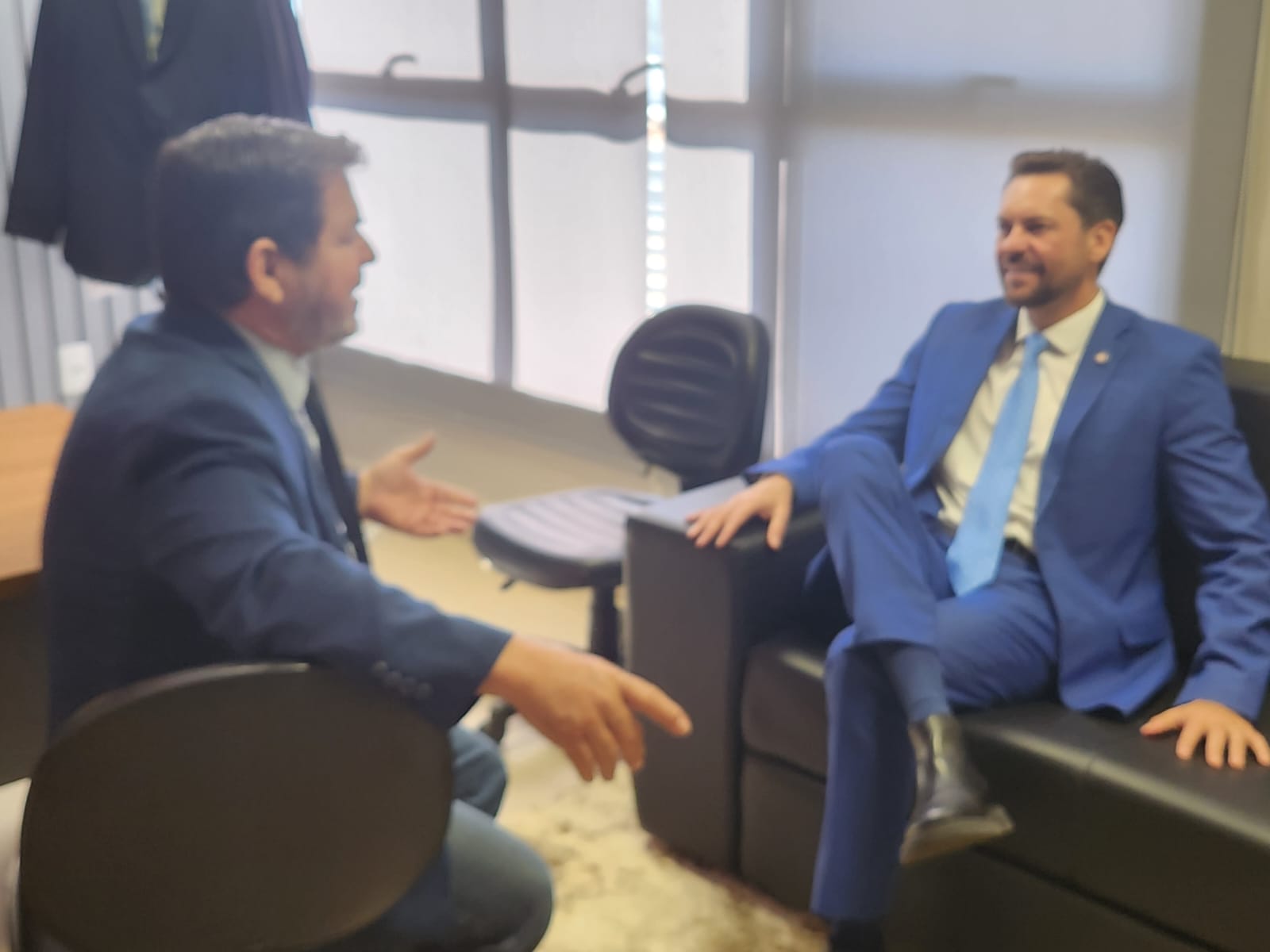 Antes de seguir para a Prefeitura de Aparecida para se encontrar com o prefeito Leandro Vilela, Bruno Peixoto também passou pelo gabinete do presidente da Câmara, Gilsão Meu Povo.