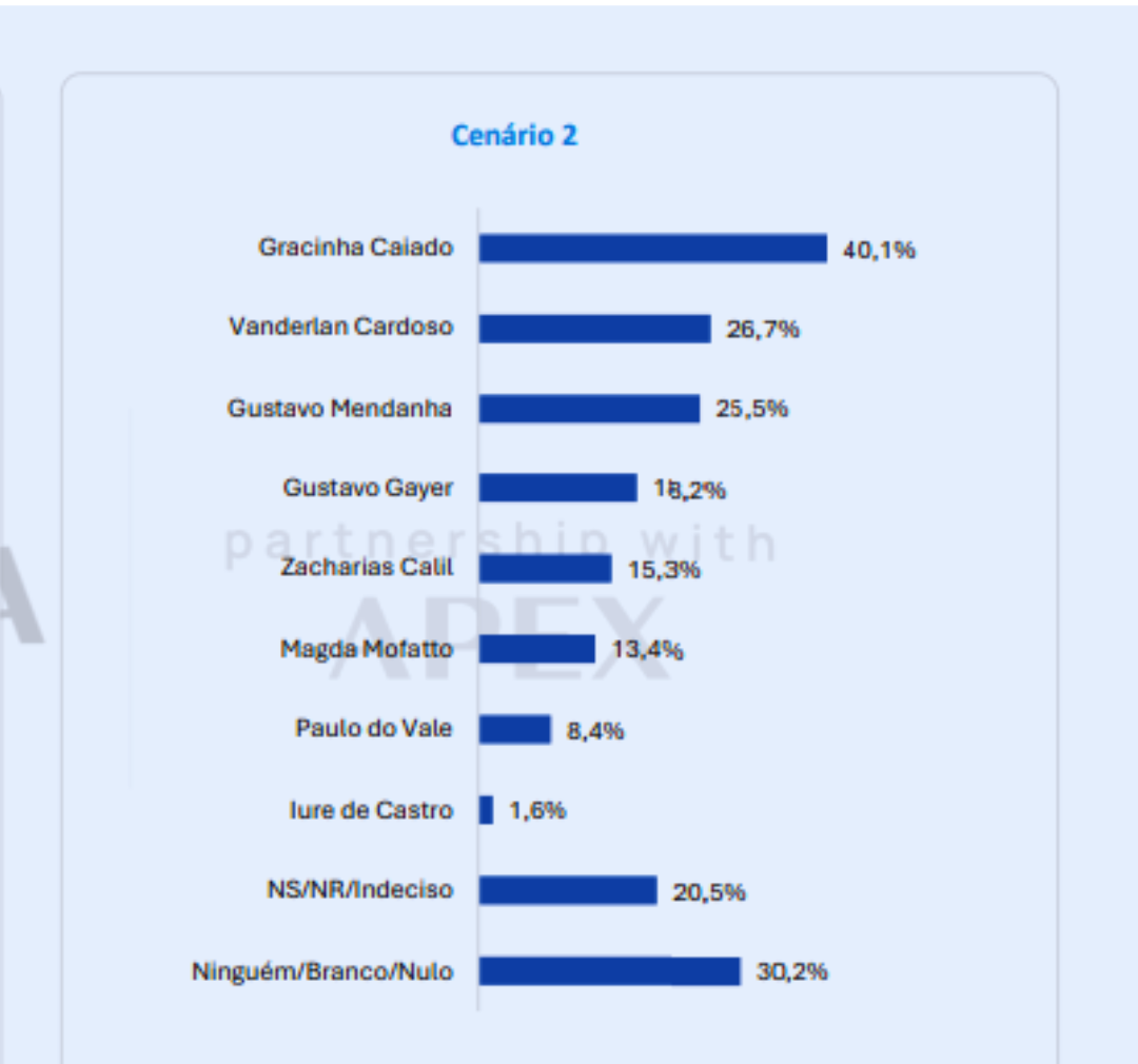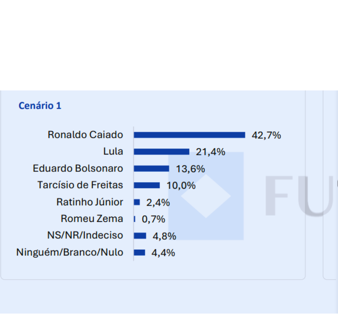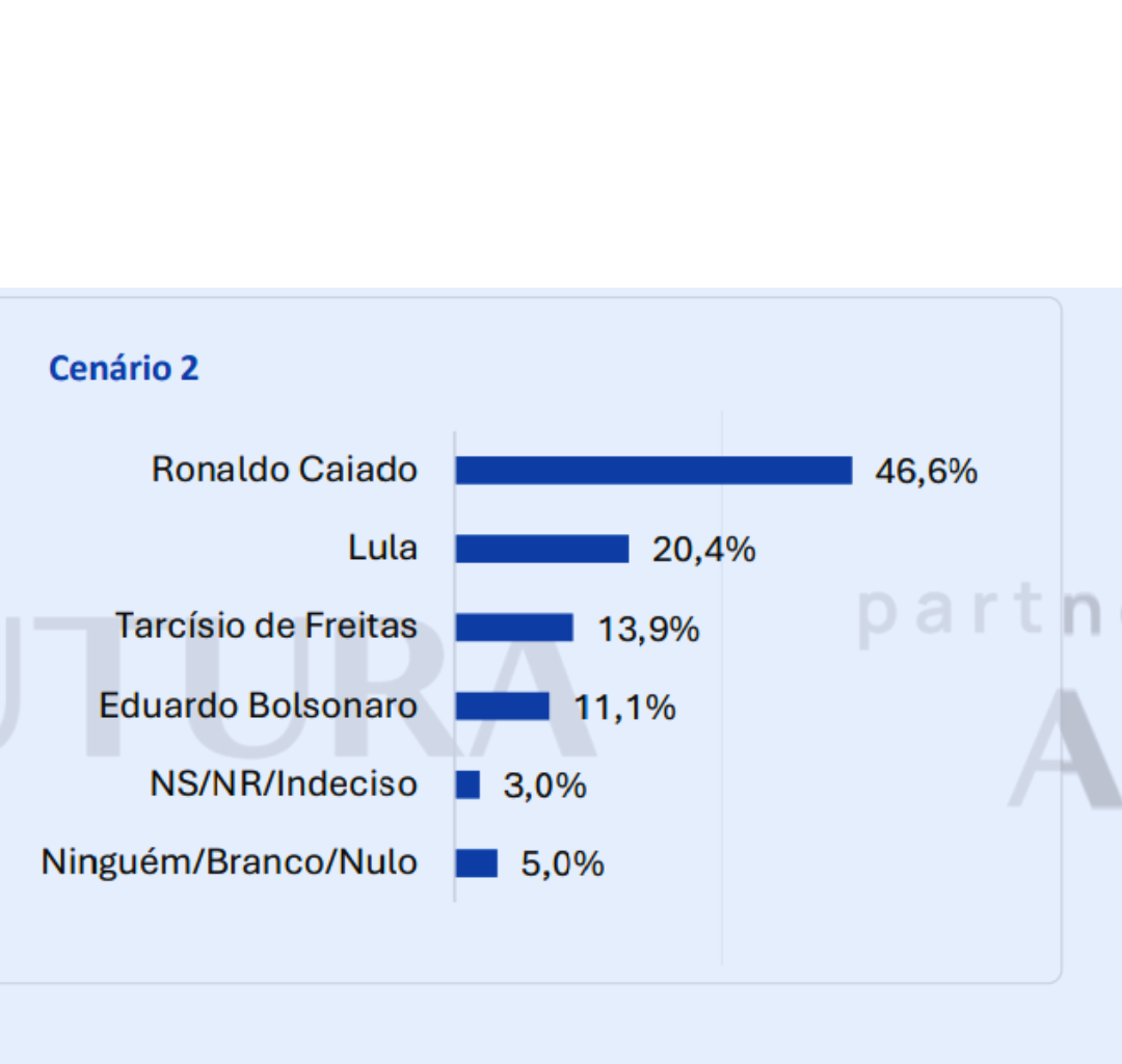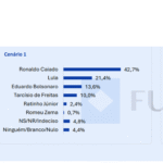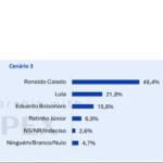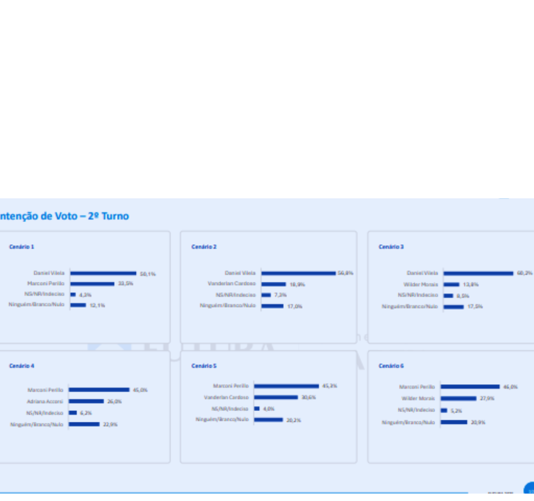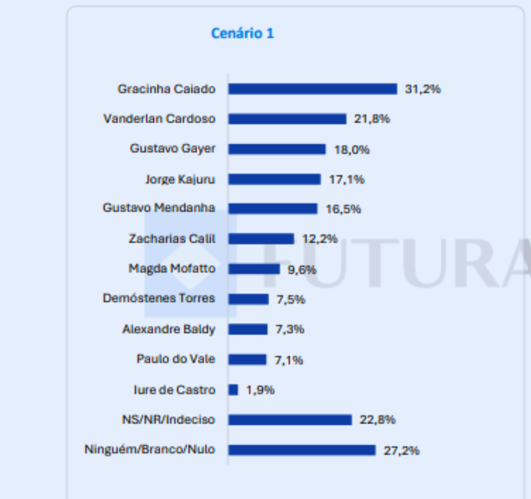 Caiado lidera todos os 3 cenários testados pelo instituto, com intenções de voto variando entre 42,7% e 48,4%.