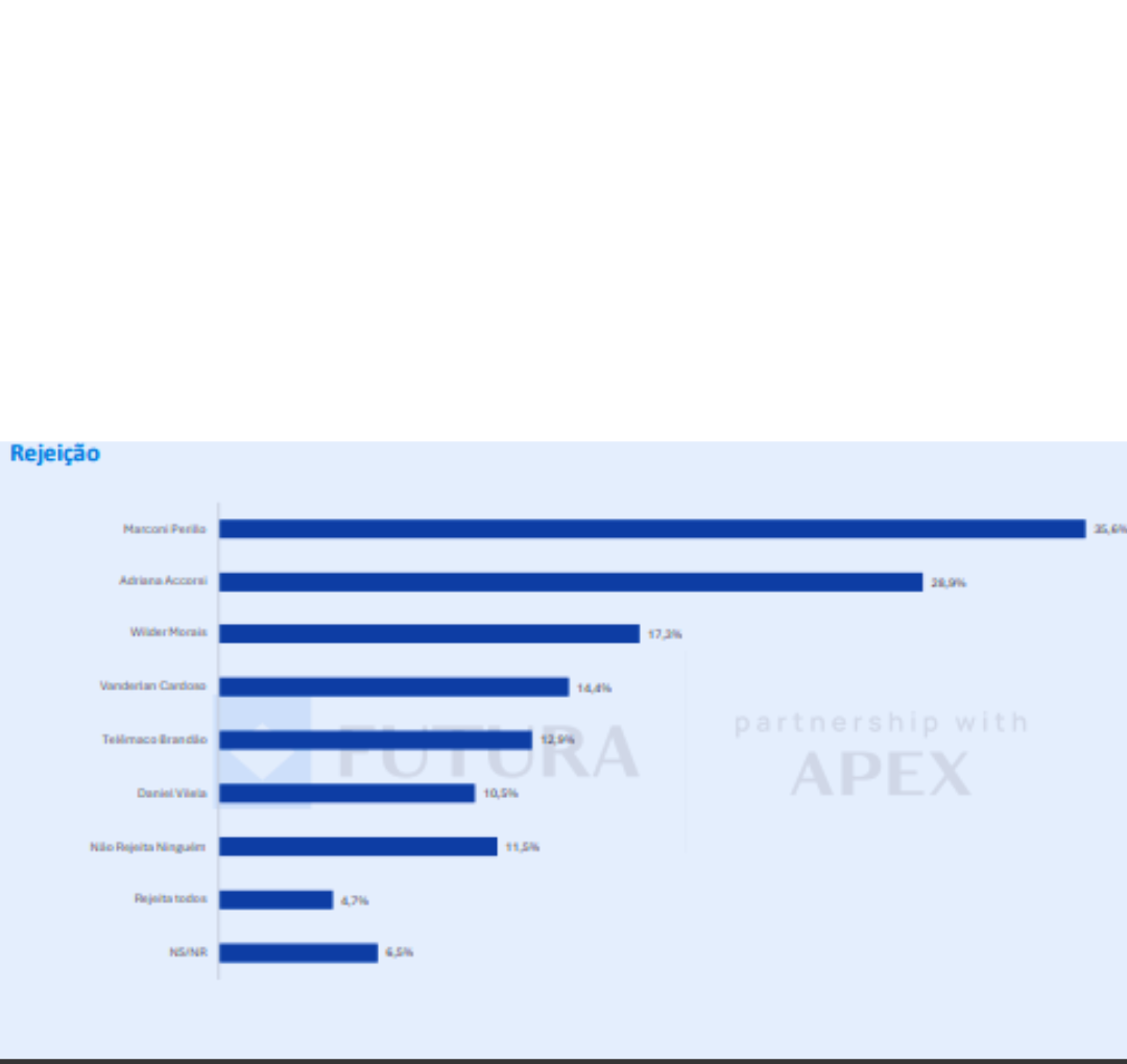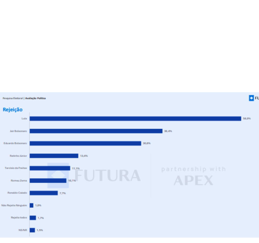 Caiado tem a menor rejeição entre os nomes testados: 7,7%, contra 58% de Lula e 36,4% de Jair Bolsonaro (PL).