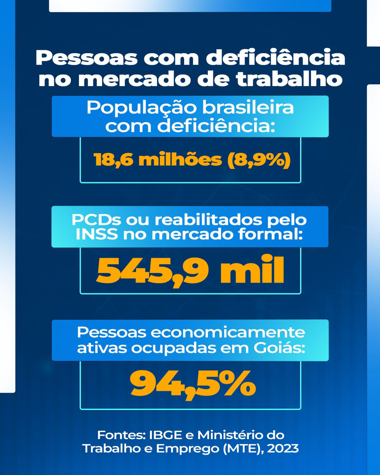Já em Goiás, o IMB aponta que 94,5% das pessoas com deficiência economicamente ativas estão ocupadas, embora grande parte ainda atue na informalidade, cenário que evidencia a necessidade de políticas estruturadas e oportunidades mais acessíveis em todos os setores produtivos.