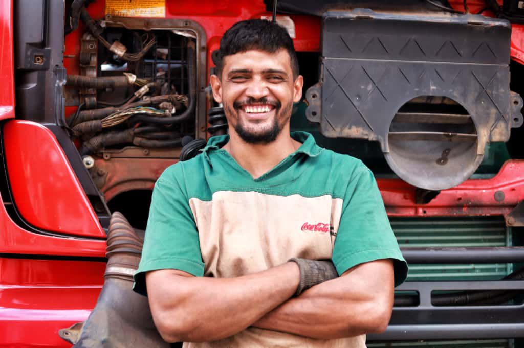 Cego de um olho, ele atua no setor elétrico da frota de caminhões da Refrescos Bandeirantes Coca-Cola há mais de dez anos.