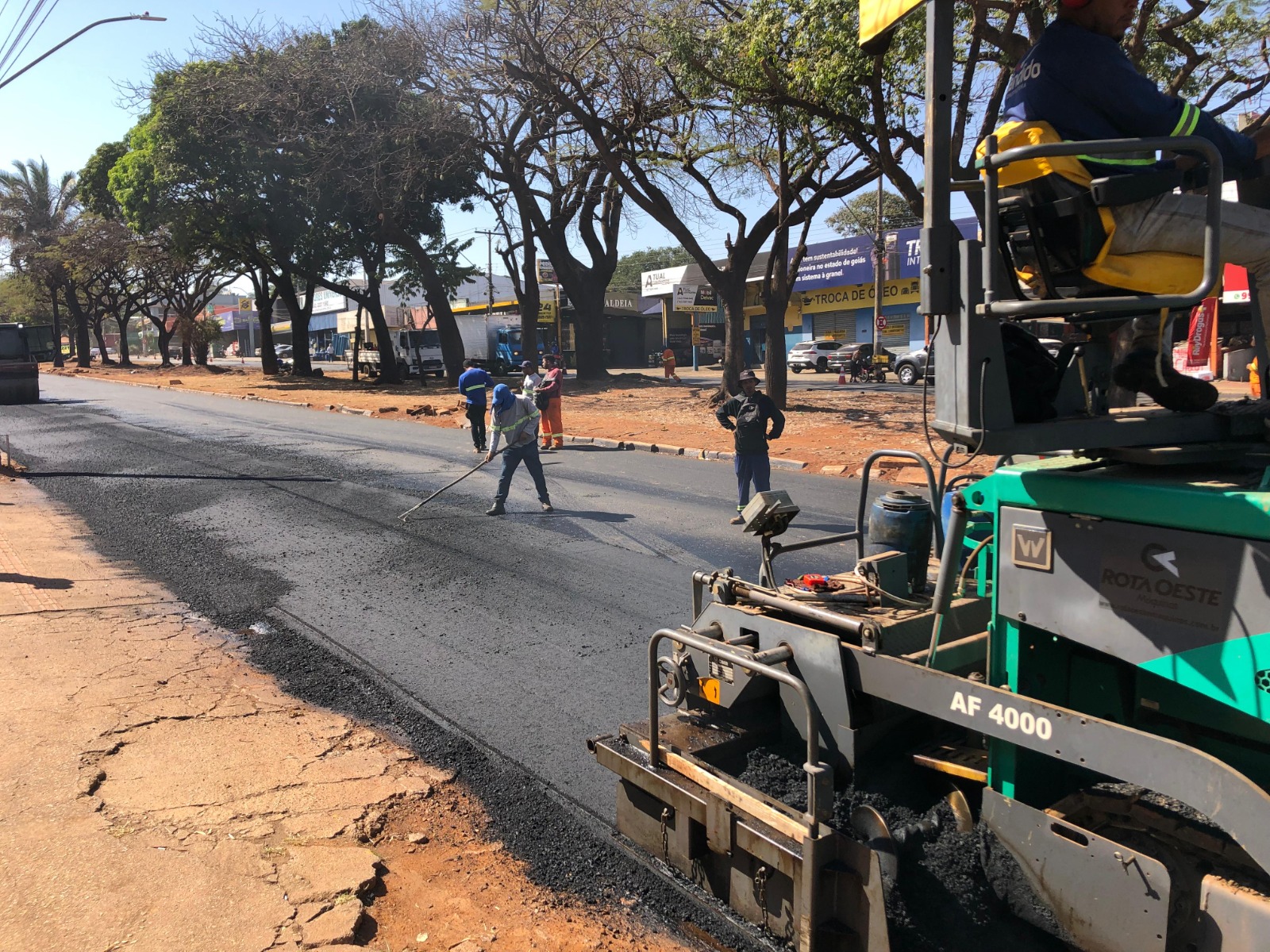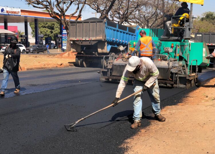 Os serviços incluem fresagem total, reforço de base e aplicação de camada asfáltica de 8 centímetros, padrão adequado para vias de grande fluxo.