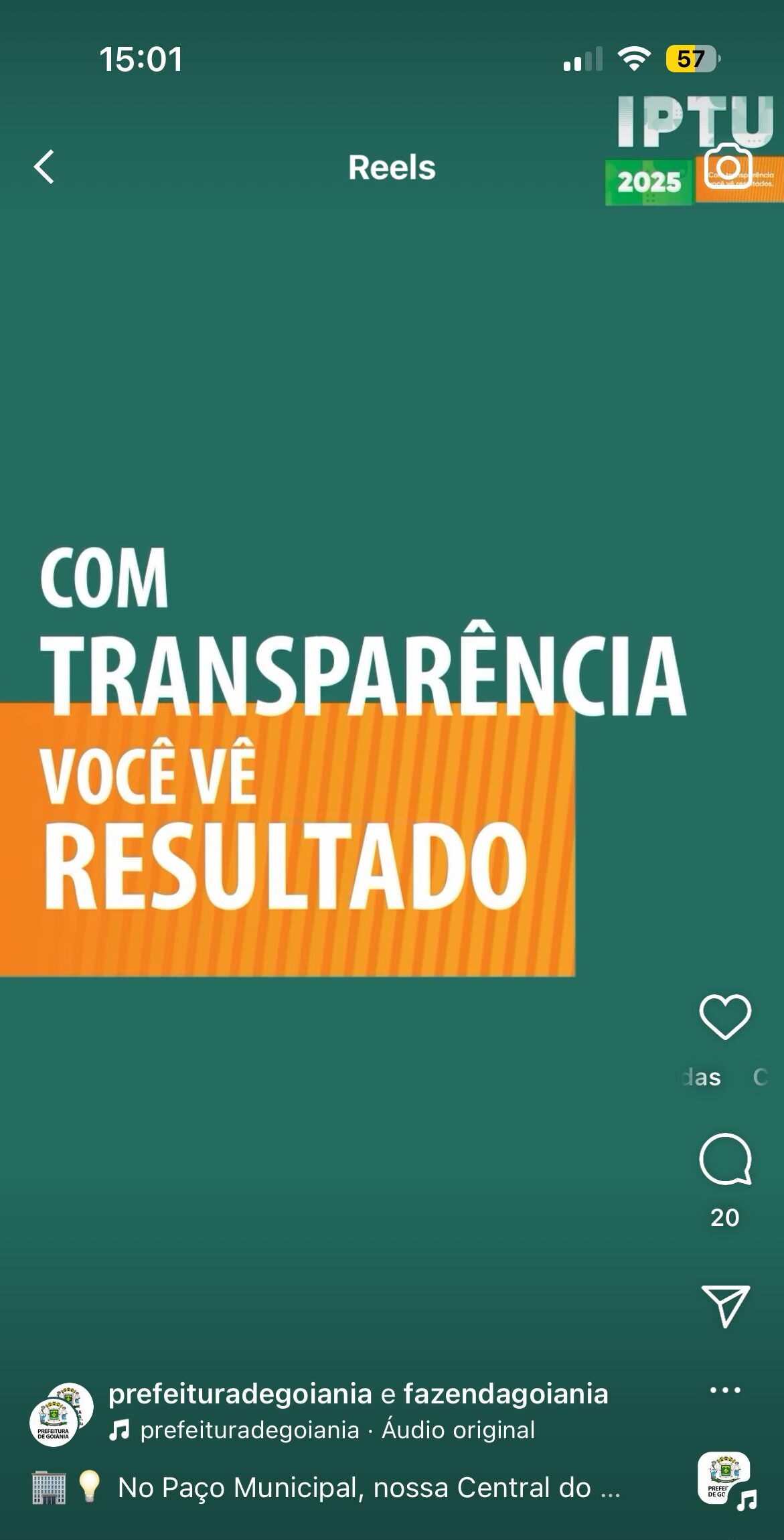 A última vez que a Prefeitura de Goiânia adotou oficialmente slogan foi em 2012, na gestão de Iris Rezende, com a frase: “Prefeitura de Goiânia: O trabalho que você vê”.