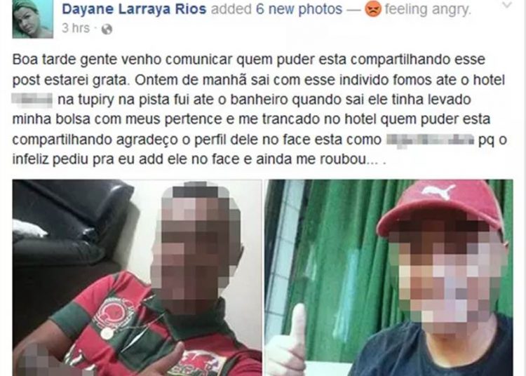 Travesti furtada se vinga exibindo fotos do cliente na web| Foto: Reprodução/Facebook