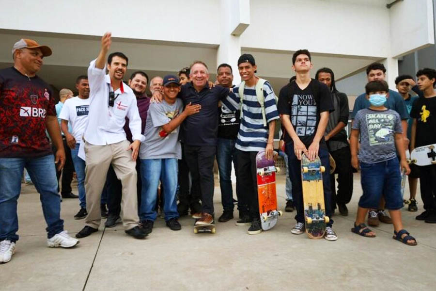 Vilmar Mariano recebe jovens fãs de skate em Aparecida de Goiânia | Foto: Divulgação