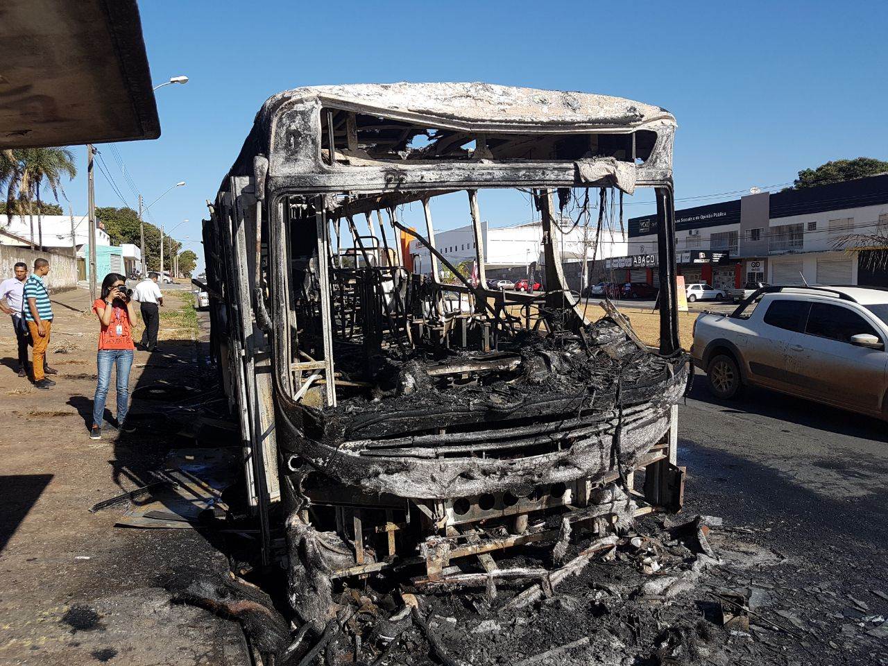 Ônibus foi consumido pelas chamas no Setor Parque Amazônia, em Goiânia | Foto: Folha Z
