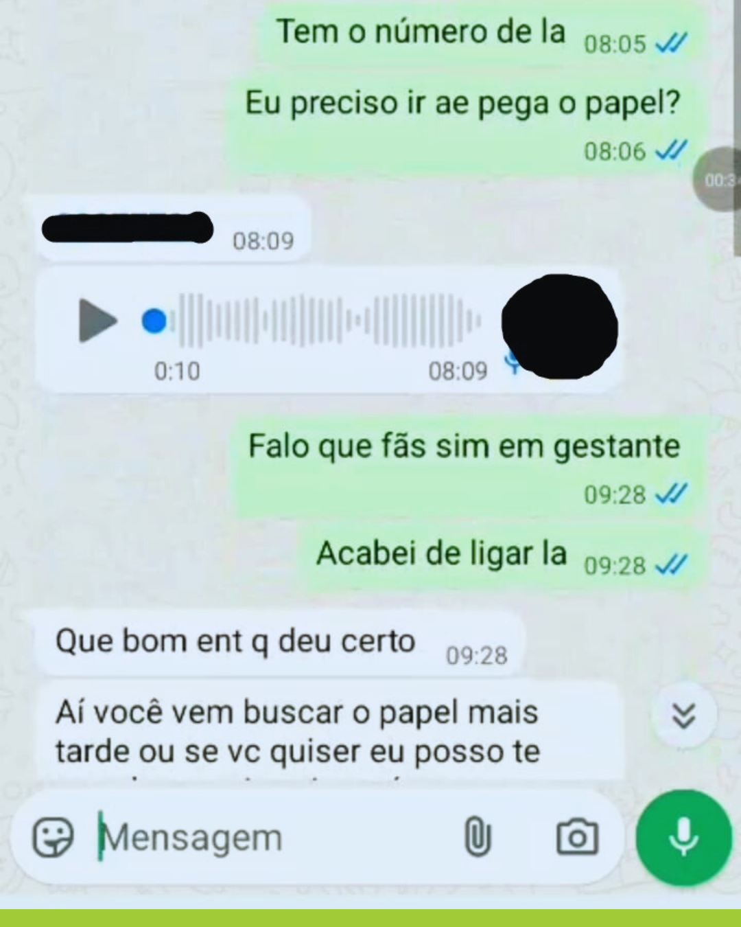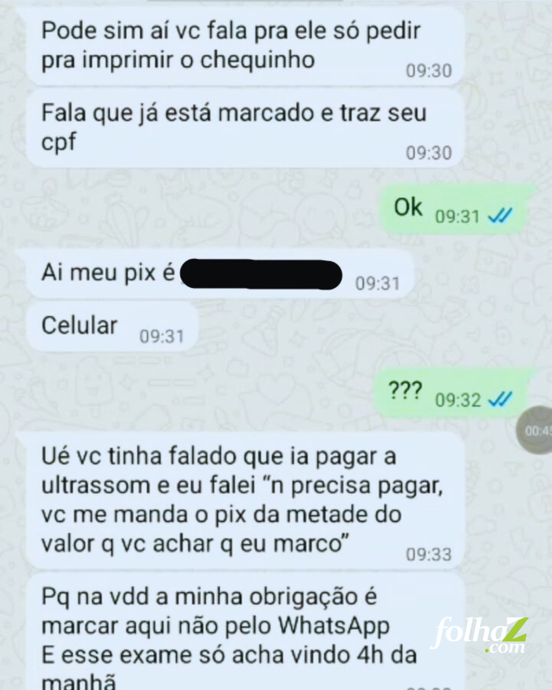 Cerca de 24 horas depois, a servidora entrou em contato com a paciente por meio de mensagens de WhatsApp, afirmando ter conseguido viabilizar o exame.