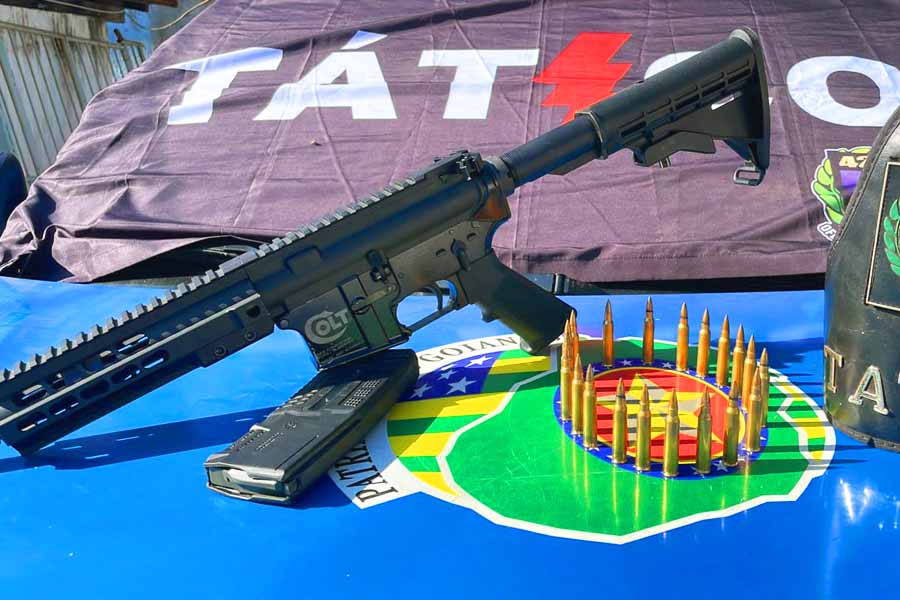 Um homem foi preso em flagrante em Goiânia com meia tonelada de maconha, um fuzil e várias munições.