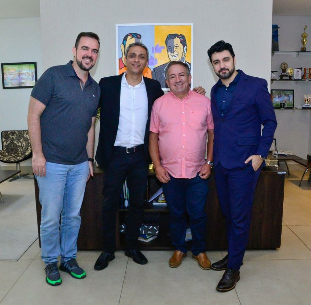 Última foto com o quadro foi publicada em 9 de março; o ex-prefeito Gustavo Mendanha e o prefeito Vilmar Mariano se reuniram com Gustavo Gayer e Fred Rodrigues | Foto: redes sociais