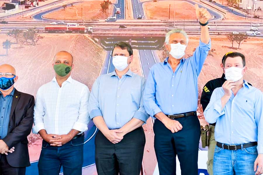 O governador Ronaldo Caiado e o ministro da Infraestrutura, Tarcísio Gomes de Freitas, entregaram nesta 2ª feira (28) obras de restauração e adequação do Anel Viário de Goiânia e Aparecida de Goiânia, no trecho que liga as rodovias BR-060 e BR-153.