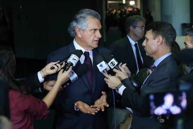 Líder protestou contra esquema de segurança montado para receber a presidente que envolve a construção de um muro na prefeitura. “A presidente se auto-impeachmou”, disse O senador Ronaldo Caiado