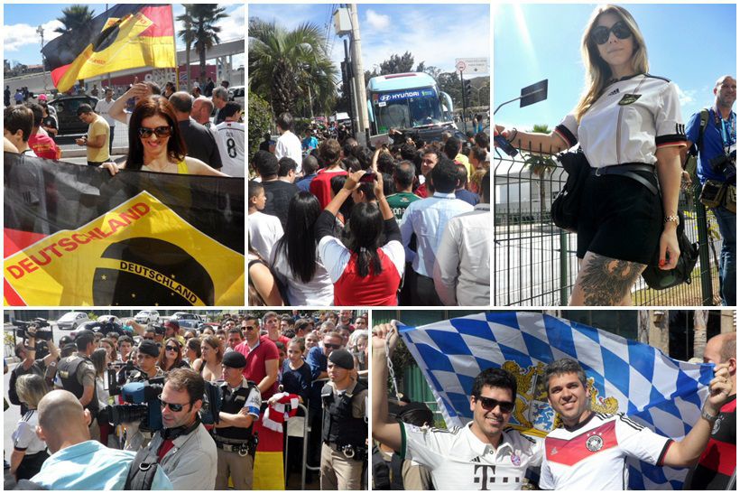 A delegação da Alemanha, que está em Belo Horizonte para a partida desta terça, 8, contra o Brasil, pela semifinal da Copa, no Mineirão, foi recebida com muita alegria. Os