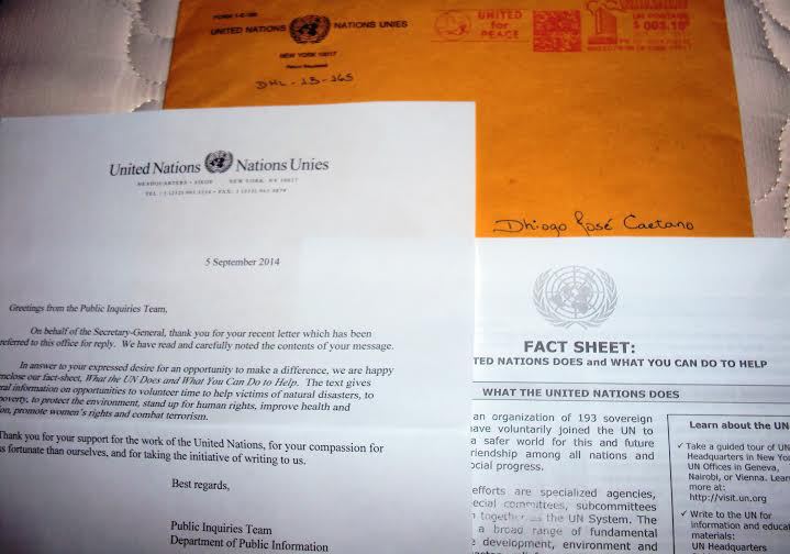 Unidos em prol da paz mundial. United Nations (New York). Meu singelo trabalho em prol dos bestializados, adentra os portões da organização das nações unidas. Honrado estou em contribuir com