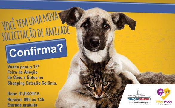 Voluntários do grupo Miau AuAu promoverão a 12ª Feira de Adoção de Cães e Gatos, no Shopping Estação Goiânia, neste domingo (1º de março), das 9h às 14h. O evento