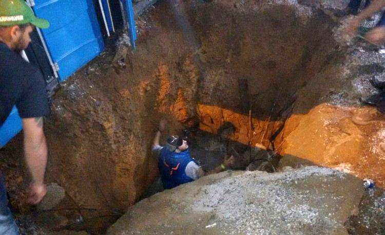 Parte de uma fossa cedeu durante a realização da festa de peão de Vianópolis, cidade a 90 quilômetros de Goiânia. O buraco, cavado próximo aos banheiros químicos, não suportou o