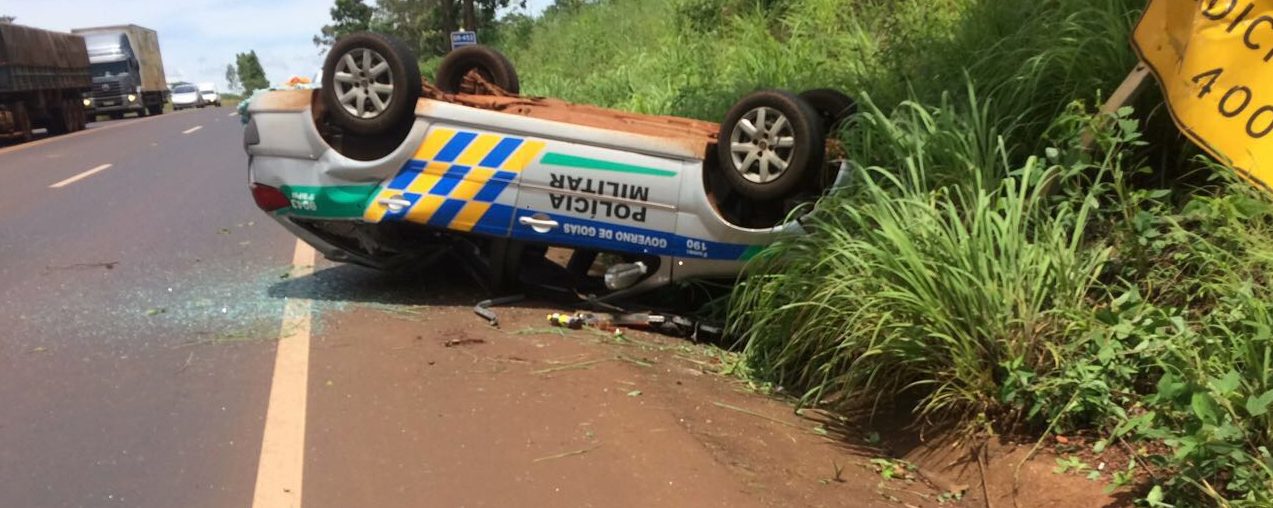 Uma viatura da Polícia Militar tombou no final da manhã desta quarta-feira, 10, na BR-452, próximo à cidade de Itumbiara, localizada a 206 quilômetros de Goiânia. ⠀ No veículo havia