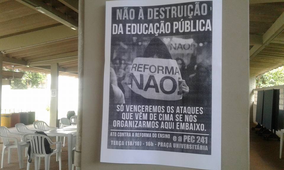 Professores, secundaristas, universitários e a comunidade em geral participam na tarde desta terça-feira, 18, de uma manifestação na Praça Universitária contra cortes de gastos do Governo Federal. Segundo o professor Thiago