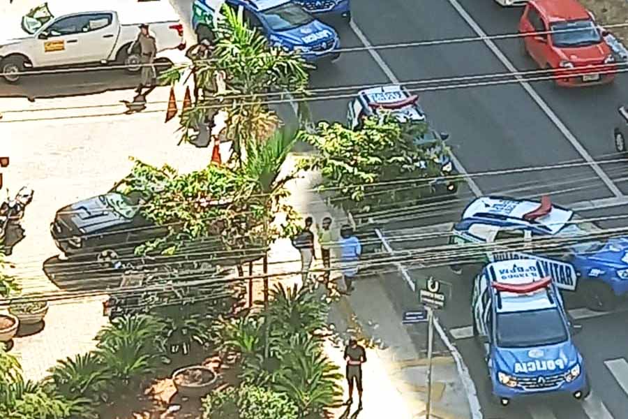 Um homem foi baleado na manhã desta 2ª feira (27) em Goiânia. O crime ocorreu dentro de uma farmácia na Avenida T-4, no Setor Bueno. Várias viaturas da Polícia Militar (PM)
