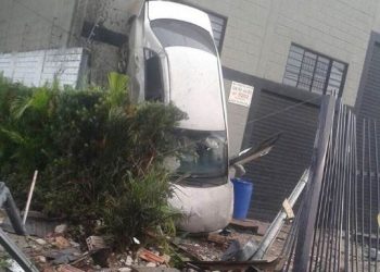 O veículo, por incrível que pareça, que ficou na vertical | Foto: divulgação Perseguição policial acabou em acidente na Avenida ...