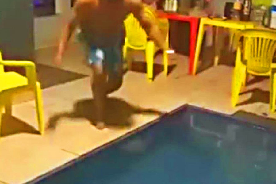 Um jacaré foi flagrado atravessando uma passarela na Barra da Tijuca, na zona oeste do Rio de Janeiro, nessa 3ª feira (29). Pedestres que passaram pelo local se assustaram com