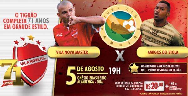 Para comemorar 71 anos, o Vila Nova realiza nesta terça-feira, 5, o jogo Vila Nova Master contra os Amigos do Viola. O evento acontece no estádio Onésio Brasileiro Alvarenga, às