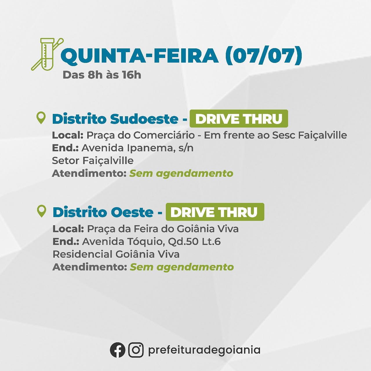 A Prefeitura de Goiânia vai disponibilizar 9 mil testes de covid-19 por dia entre 06/07 e 08/07.
