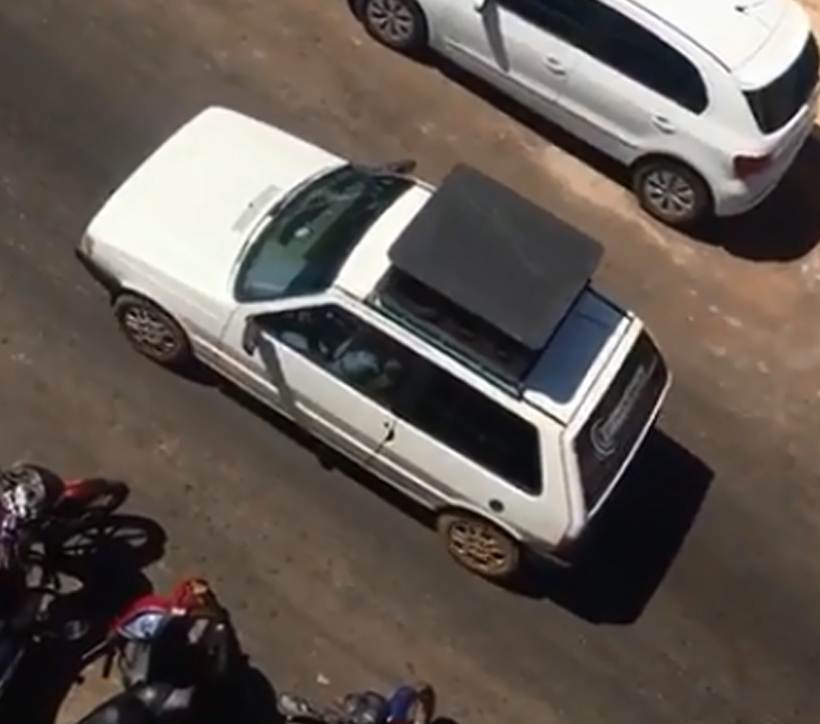 Em seguida, Lucas saiu da máquina, que foi transportada pelo tratorista à caixa d’água.